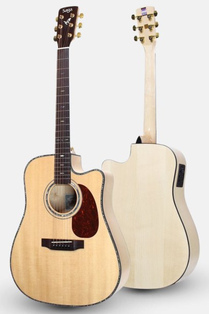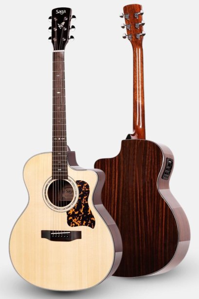 SKU : SL55CE กีต้าร์โปร่งไฟฟ้า SAGA SL55CE ( All Solid ) แถม กระเป๋าหนา ปิ๊ก ประแจขันคอ ตารางคอร์ด สายแจ็ค สายสะพาย และรับประกัน 1 ปี